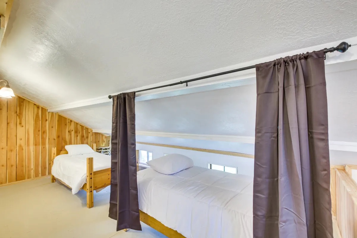 - Lodgepole Gallery: 2 single beds in the eaves with privacy curtains