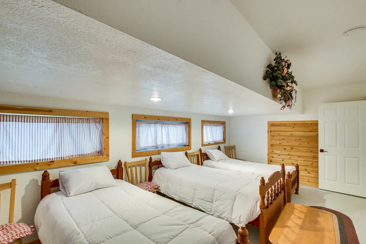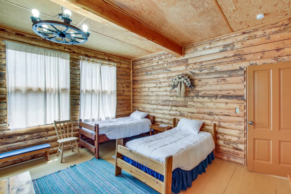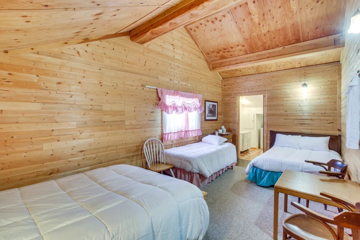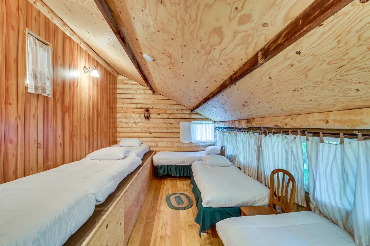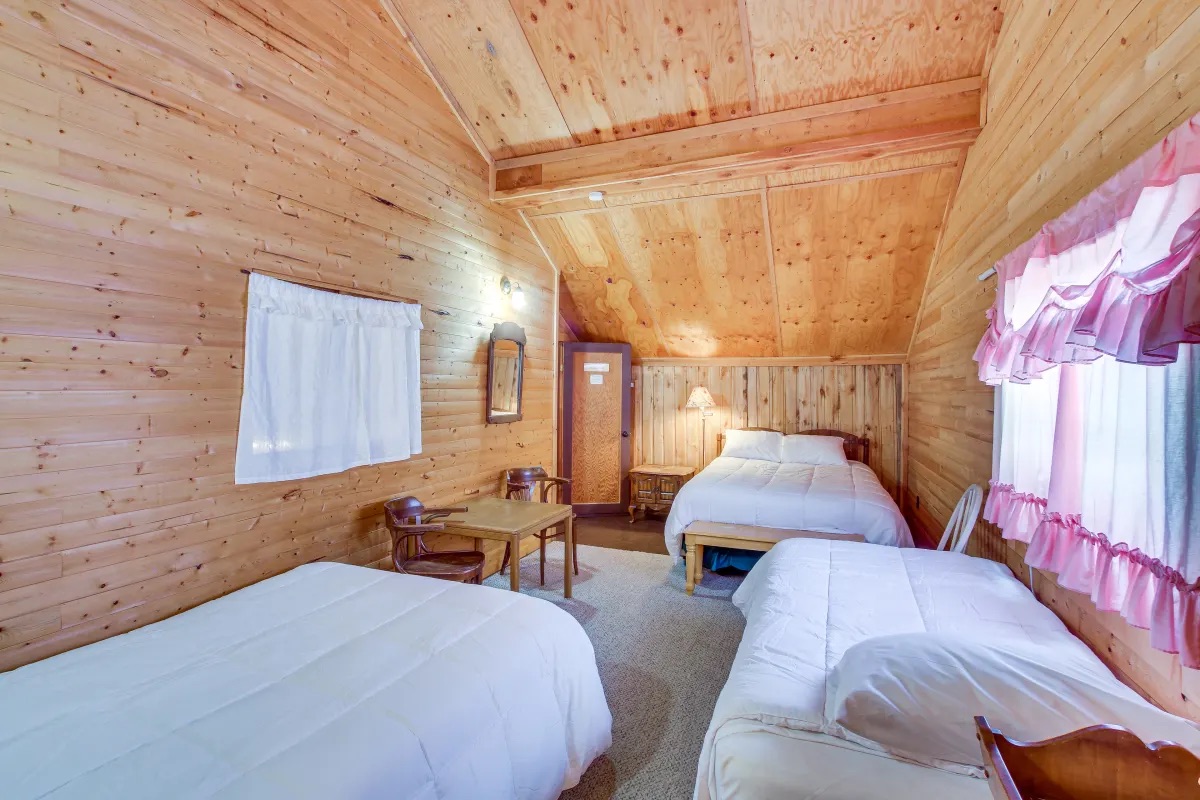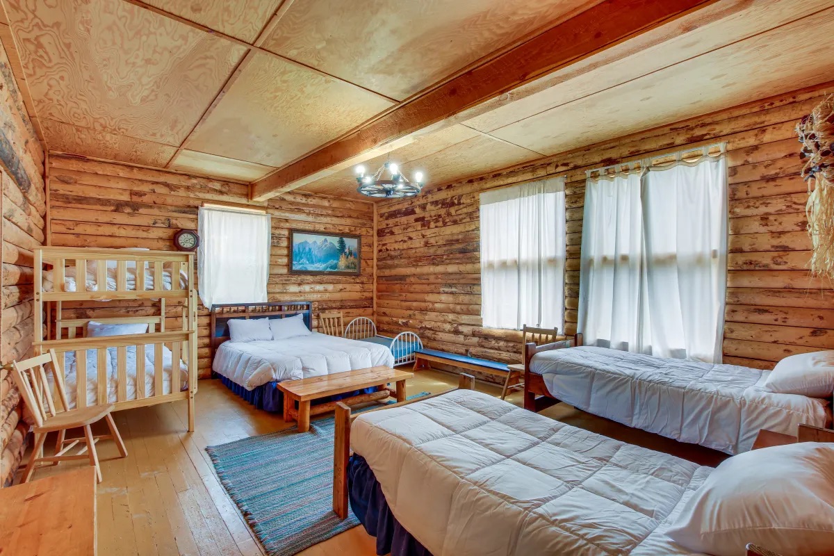 - Ponderosa: 1 queen bed, 2 single beds, 1 bunk bed, and 1 toddler bed