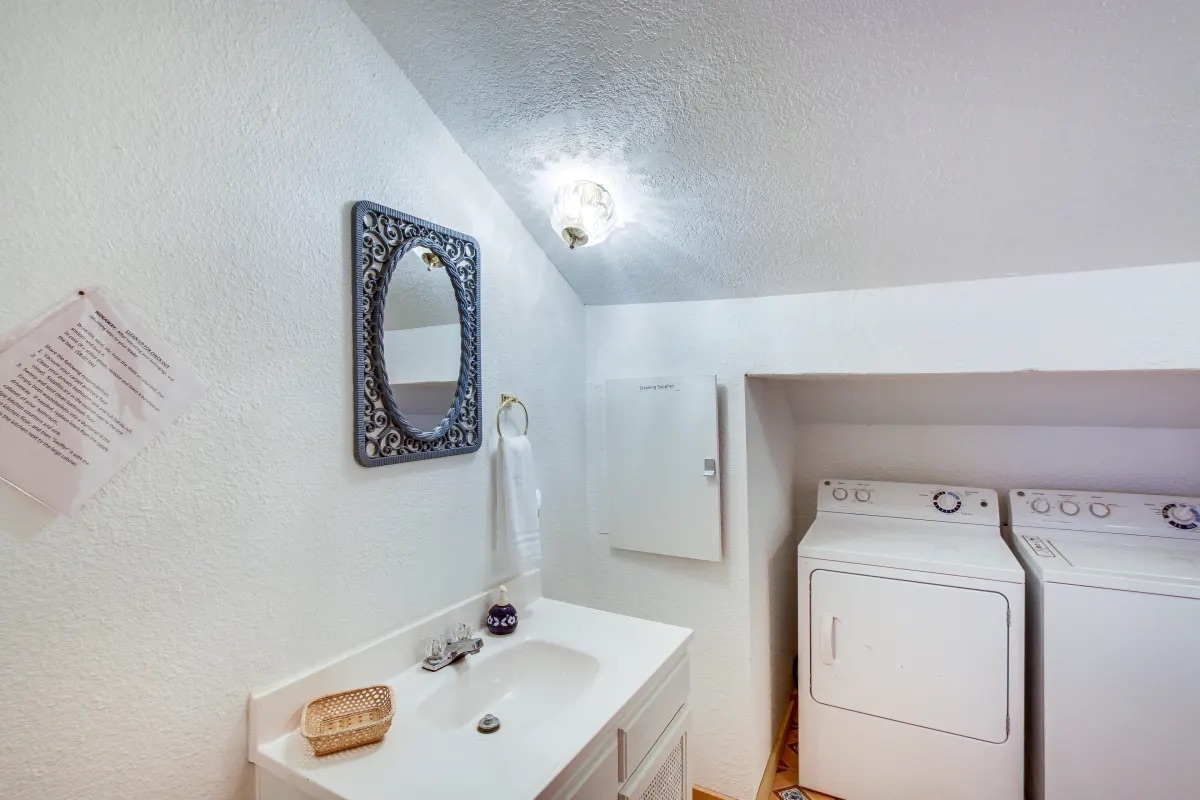 - Upstairs Hideaway: private bathroom with tub/shower, washer & dryer