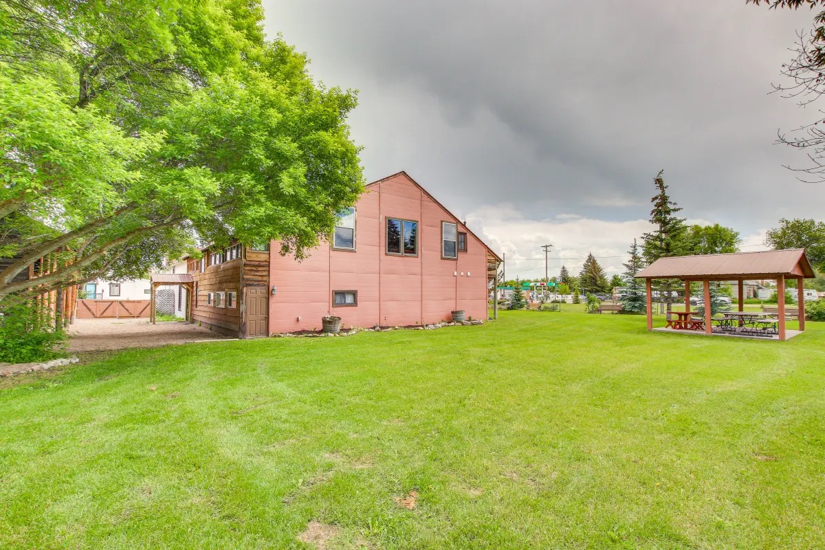 - Outdoor area: there is a picnic pavilion along with a large grassy area for volleyball (bring your own ball and net) or other activities. Bring your own BBQ to use in a designated area. Due to fire hazard fireworks are not allowed anywhere on the premises.